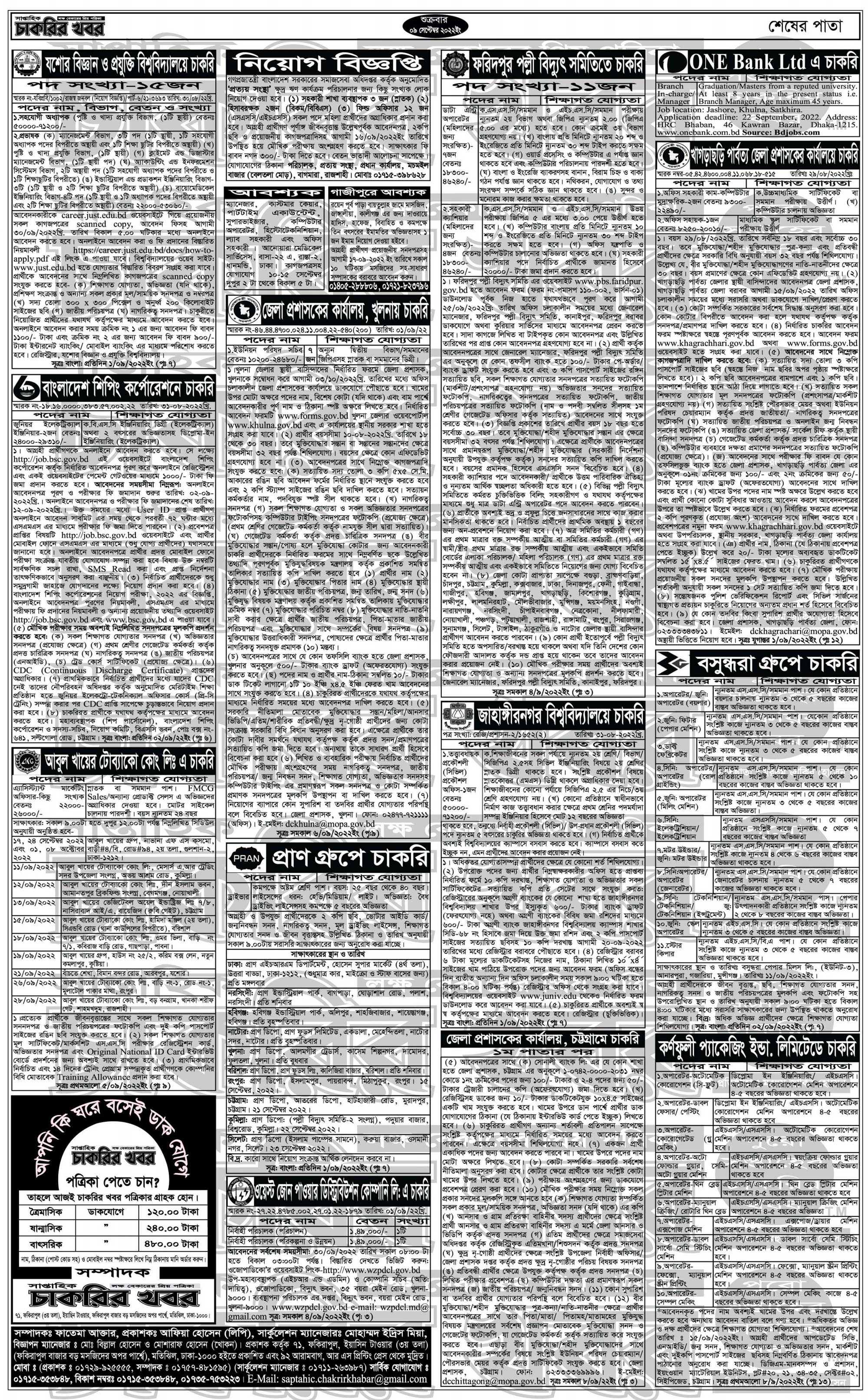 ০৯ সেপ্টেম্বর ২০২২ এর সাপ্তাহিক চাকরির খবর পত্রিকা